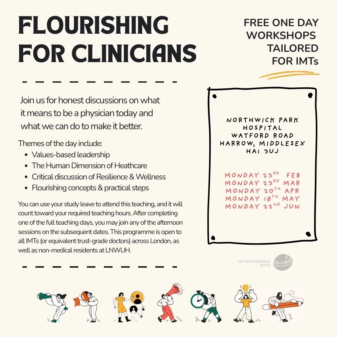 Flourishing For Clinicians workshops led by Jey, in partnership with Flourishing Spaces
